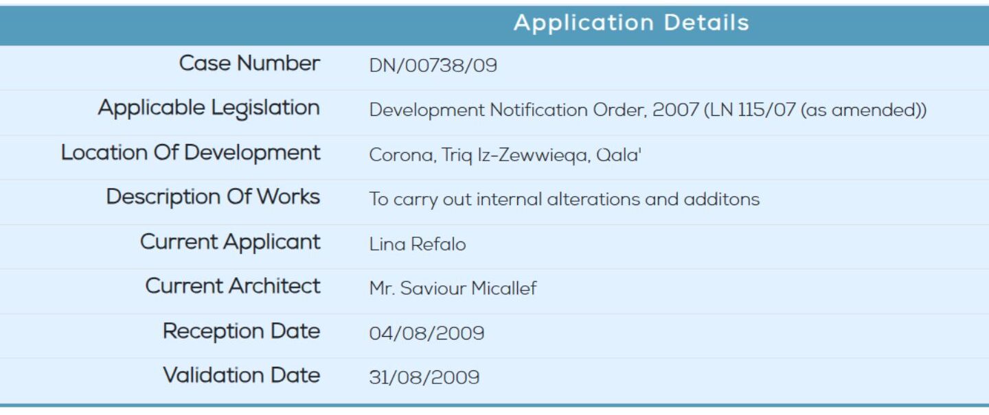 Kayıtlara göre Refalo, 2009 yılında Brescia'lı bir İtalyan mal sahibinden villayı kiralamaya başladıktan kısa süre sonra eşi Lina, iç yapısal değişiklikler için izin aldı. O tarihten bu yana başka bir tadilat kaydı bulunmuyor.